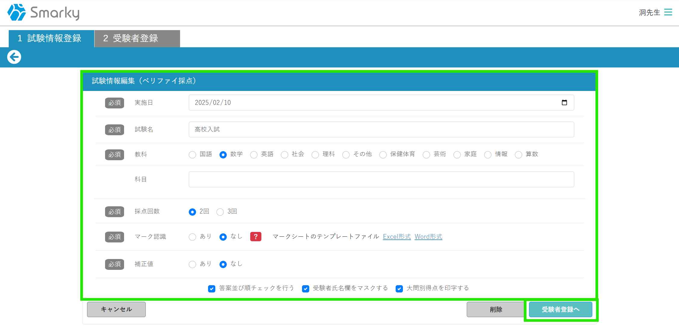 ※「教室」「受験番号」「氏名」「補足事項(任意)」を入力してください。