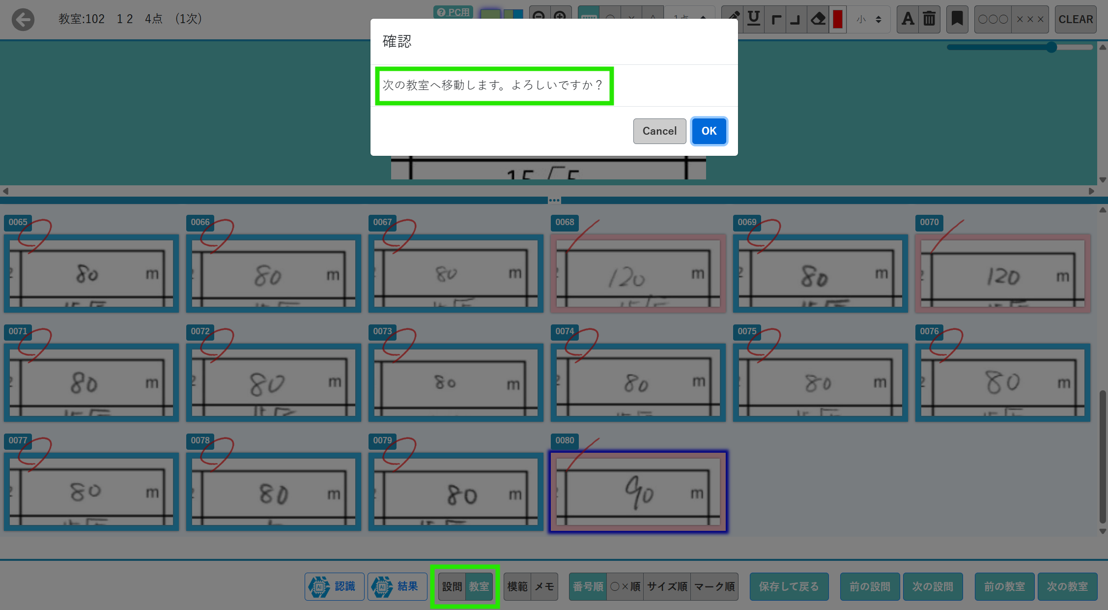 ② 採点を完了するとデフォルトでは「次の教室」へ遷移します。