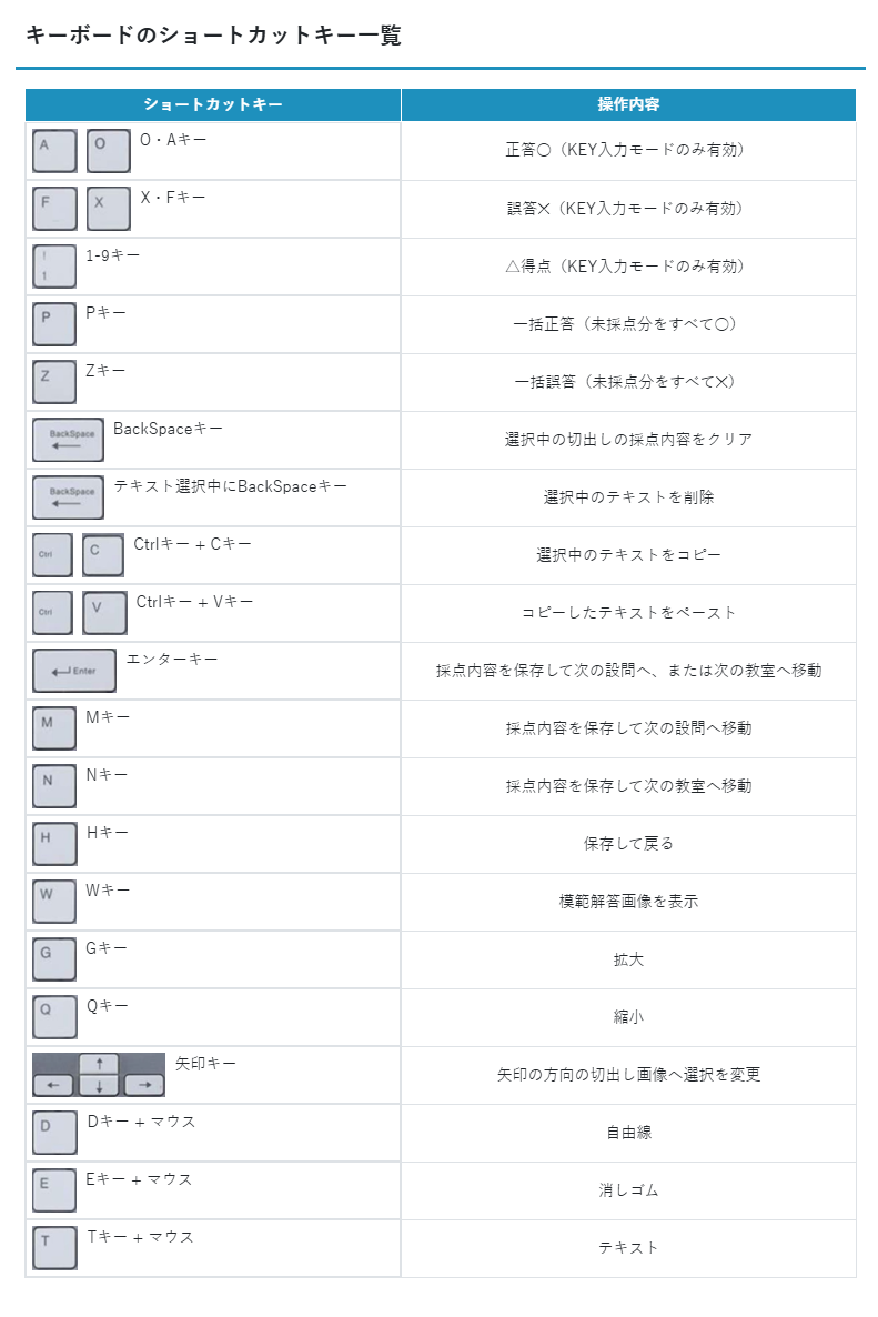 「KEYボードのショートカット」操作より採点を行います。
