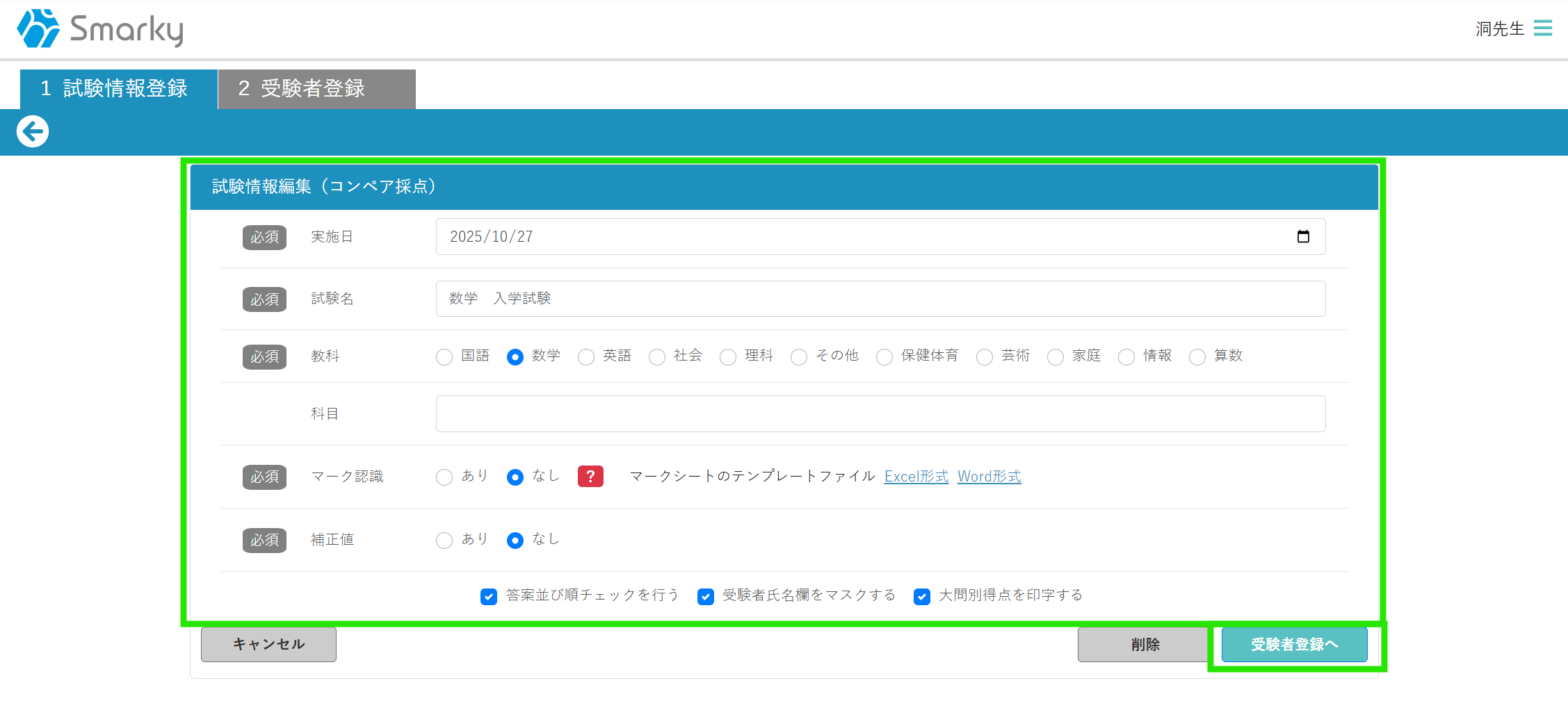 ③ 試験情報を登録します。