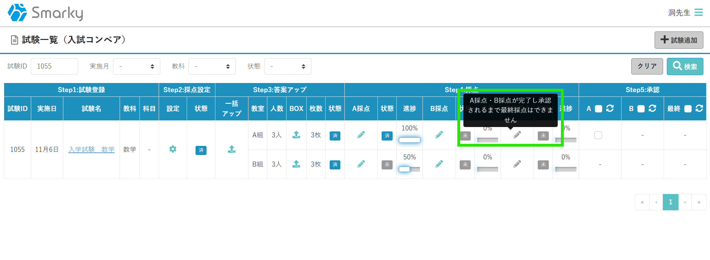 ⑤ A・B採点ともに承認まで完了すると、最終採点者の採点が可能になります。