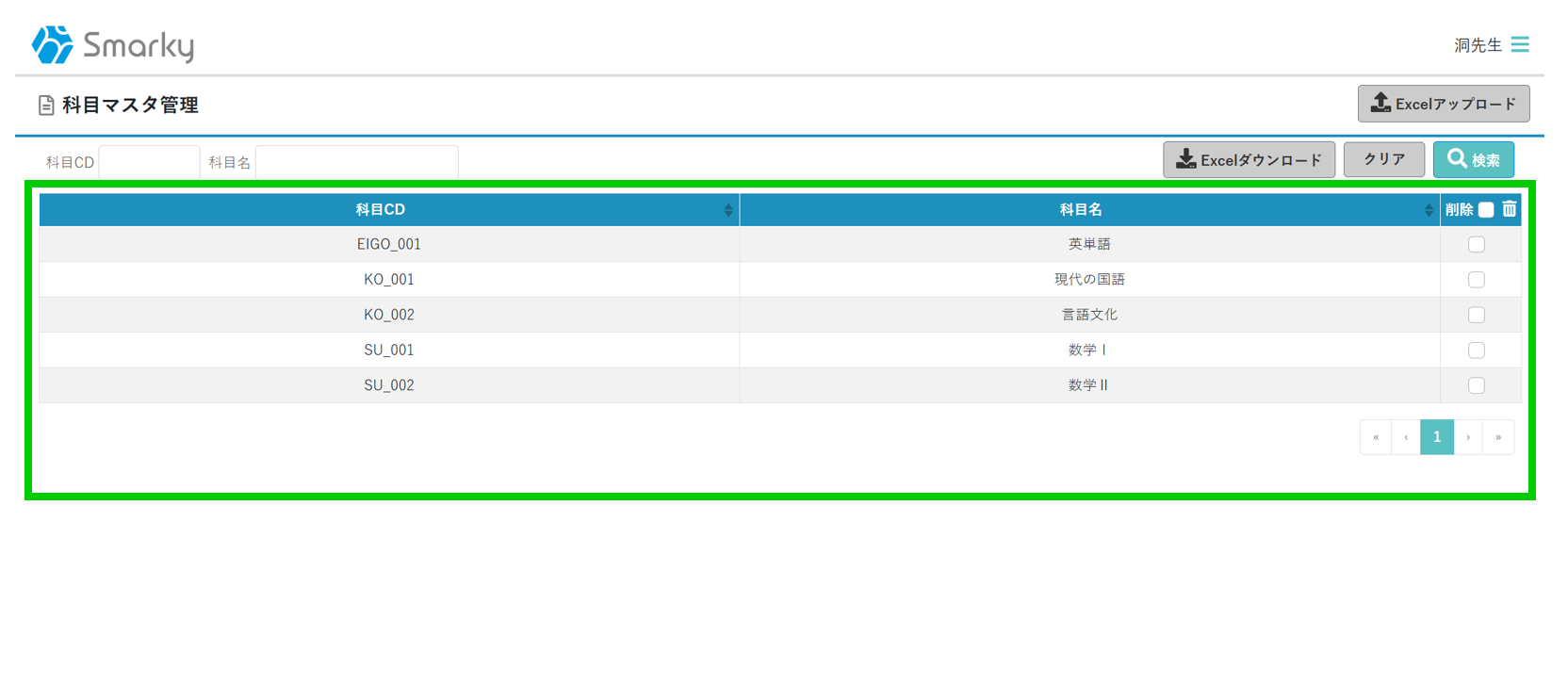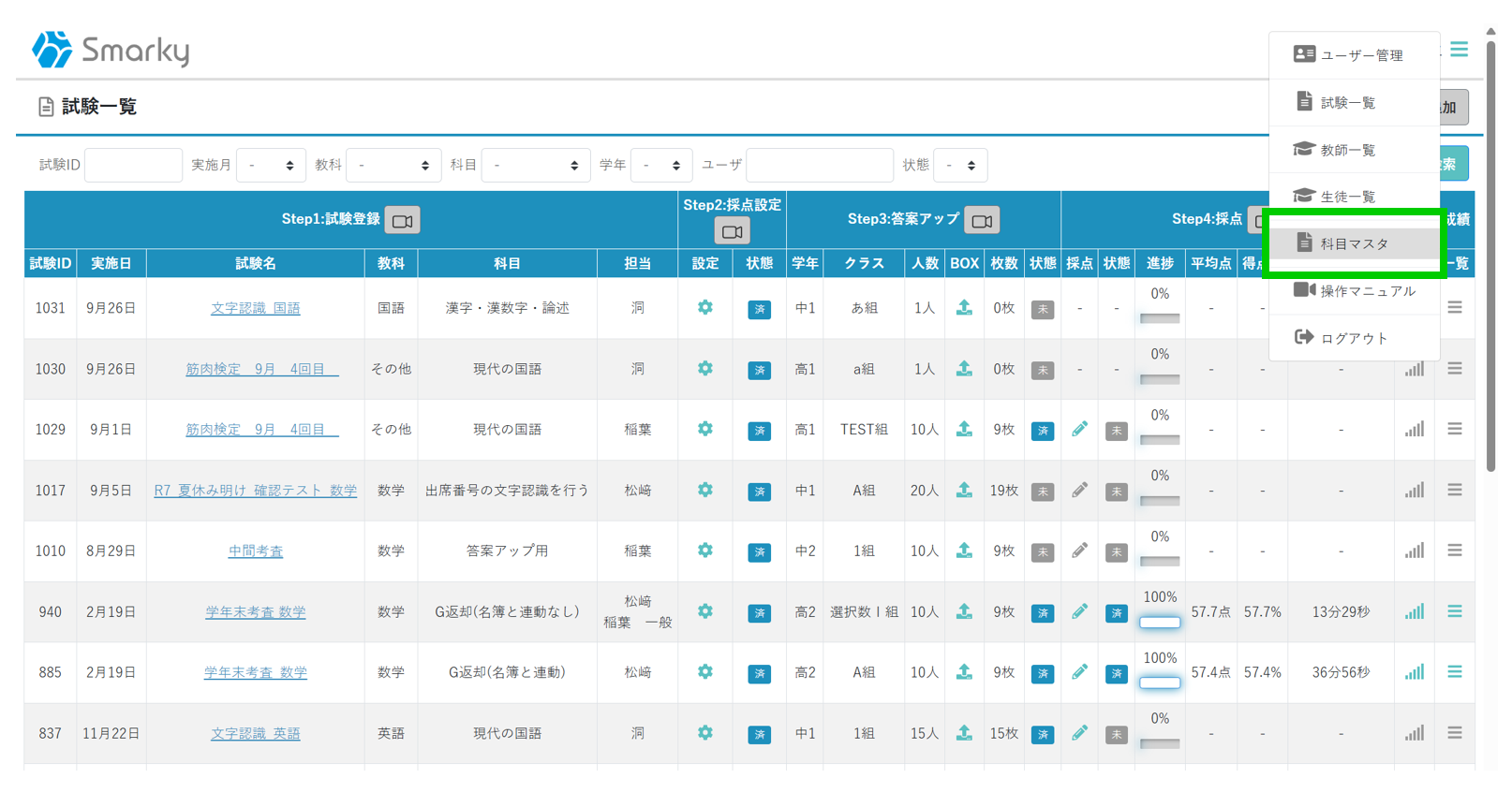 ①管理者アカウントのメインメニューより「科目マスタ」を選択します。