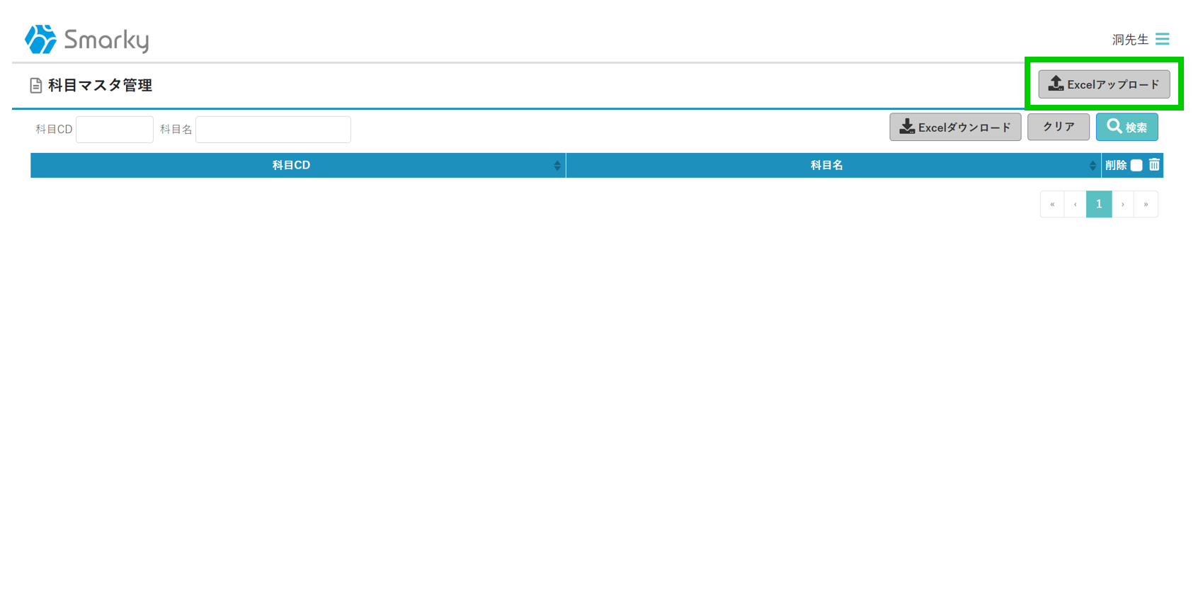 ②科目マスタ管理画面にて「Excelアップロード」を選択します。